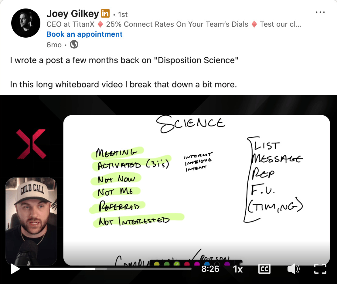 If you become a customer, we’ll give you a rigorous lesson on Disposition Science. Joey’s posted about it a few times on LinkedIn, too: