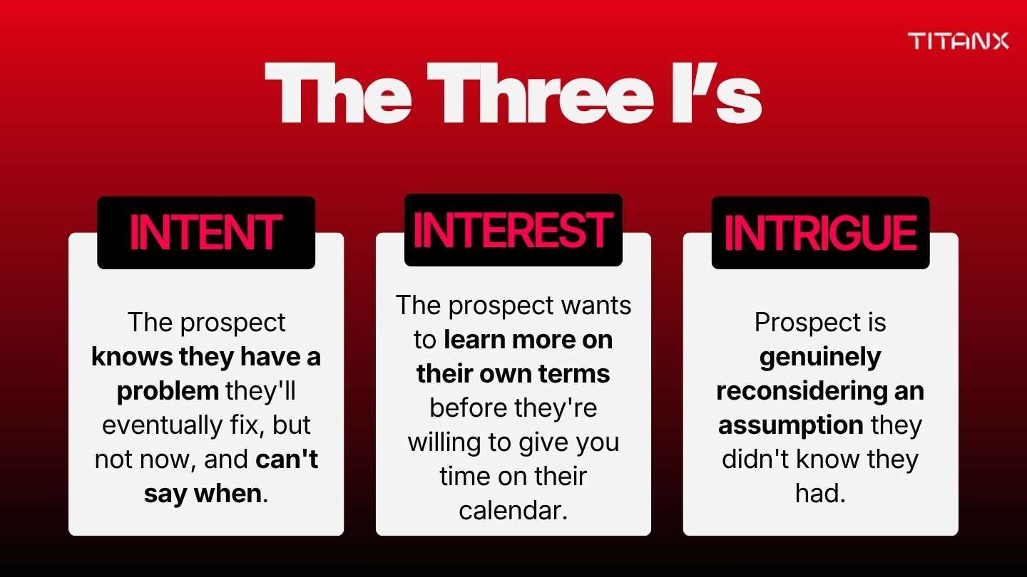 Intrigue is different from Interest because they’re not asking for more yet. The signal is that they stayed on the line and talked for a bit. That’s meaningful and worth following up on.