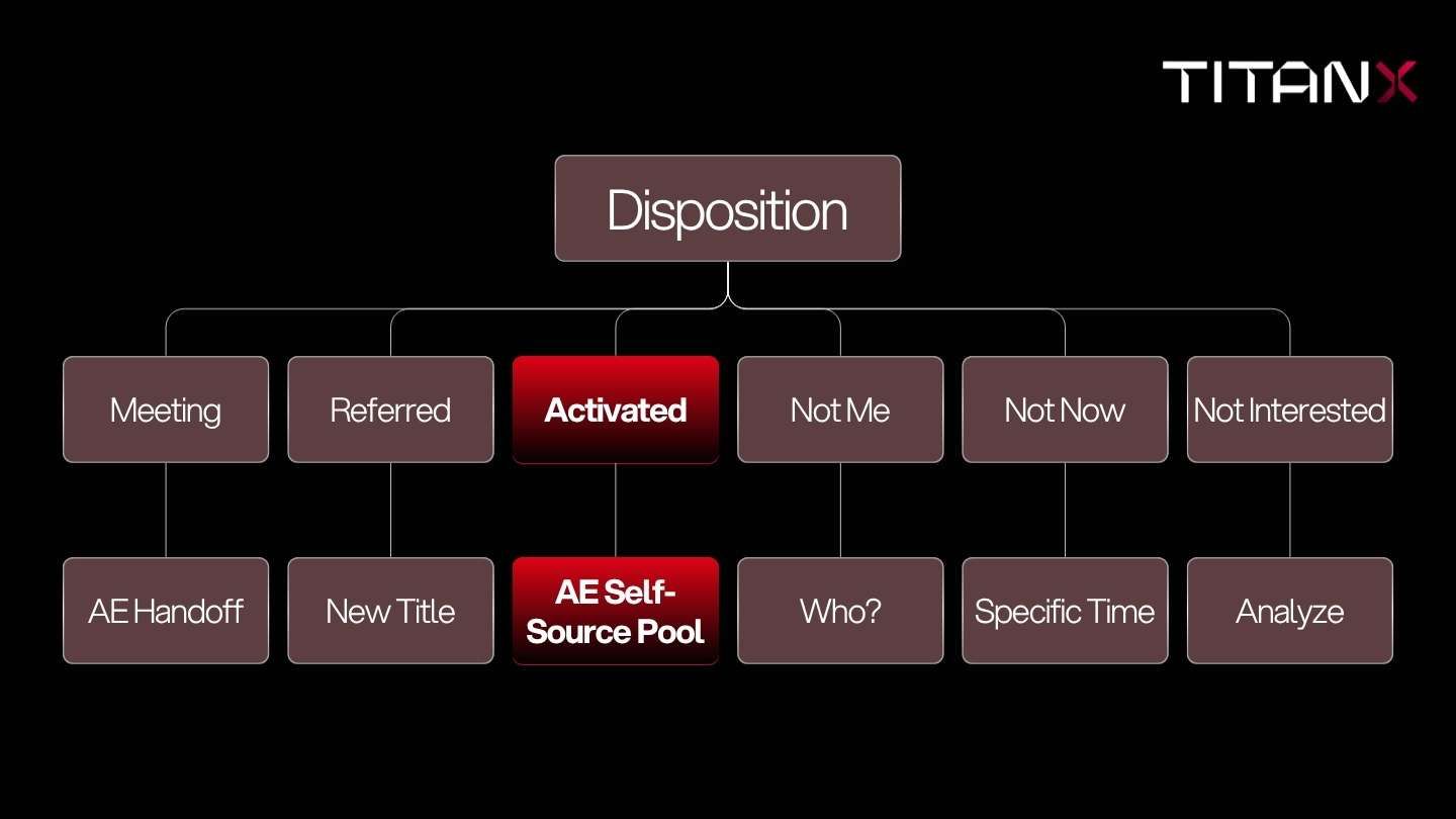 Not us. At TitanX, dispositions are not a status or mere description of what happened. They cannot be grouped into “meeting” and “not meeting” because we treat contacts differently based on those dispositions.